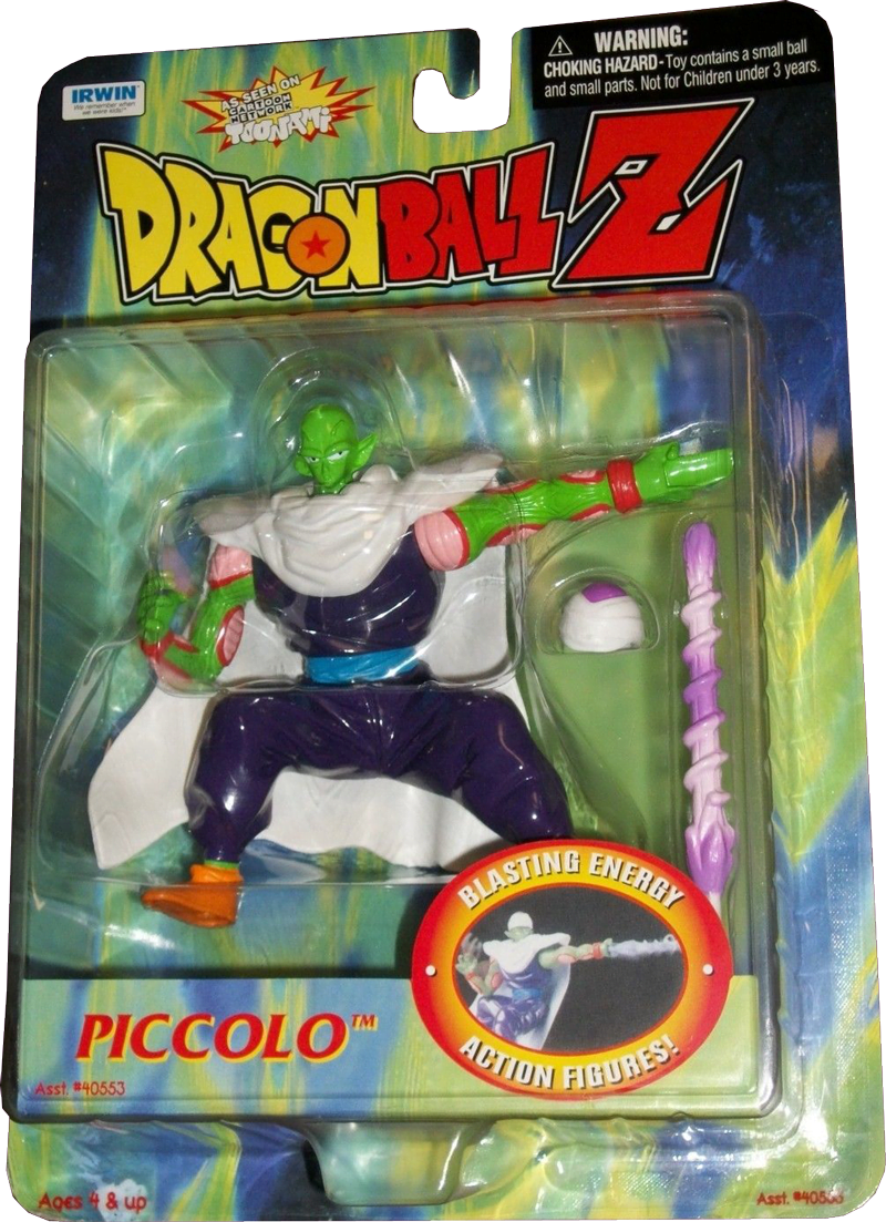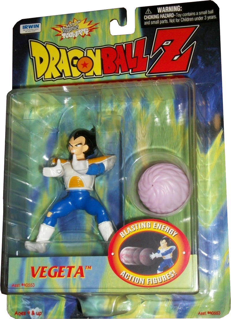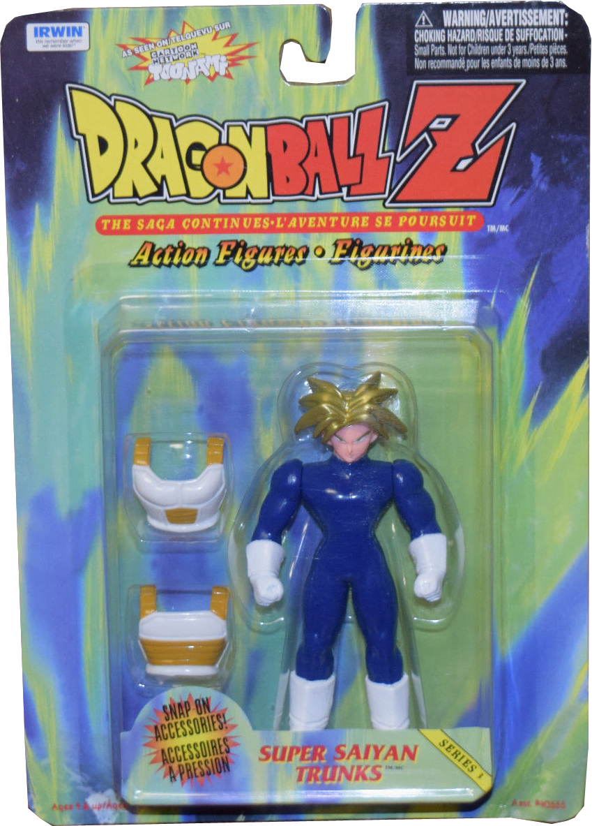 It wasn’t until the end of the 1999 that Irwin Toys started manufacturing their own original line of Dragon Ball Z figures. The first series was comprised of one of my personal favorites, Master Roshi, as well as Bulma, Nappa, Raditz, and Garlic Jr. (If you’ve only seen DBZ Kai, then note that Garlic Jr. was a ‘filler saga’ in DBZ after the Frieza saga, you can read about the sagas here). Irwin’s original line came with accessories like Dragon Balls, swords, medallions, and later, cards.